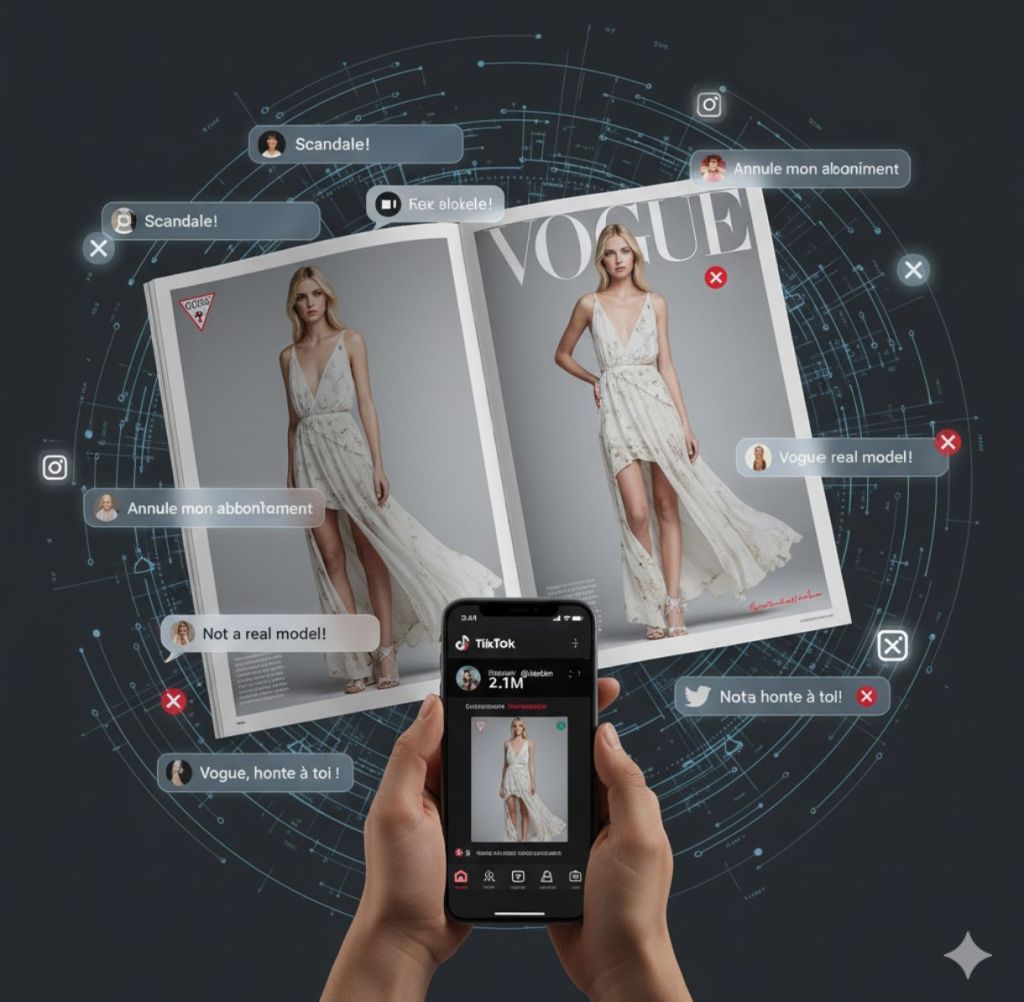 La controverse a éclaté lorsque l’utilisateur TikTok @lala4an a publié une vidéo mettant en avant le mannequin IA, qui a rapidement dépassé les 2 millions de vues. Les professionnels de l’industrie de la mode et les lecteurs ont réagi par une condamnation généralisée sur les réseaux sociaux, beaucoup menaçant d’annuler leur abonnement à Vogue